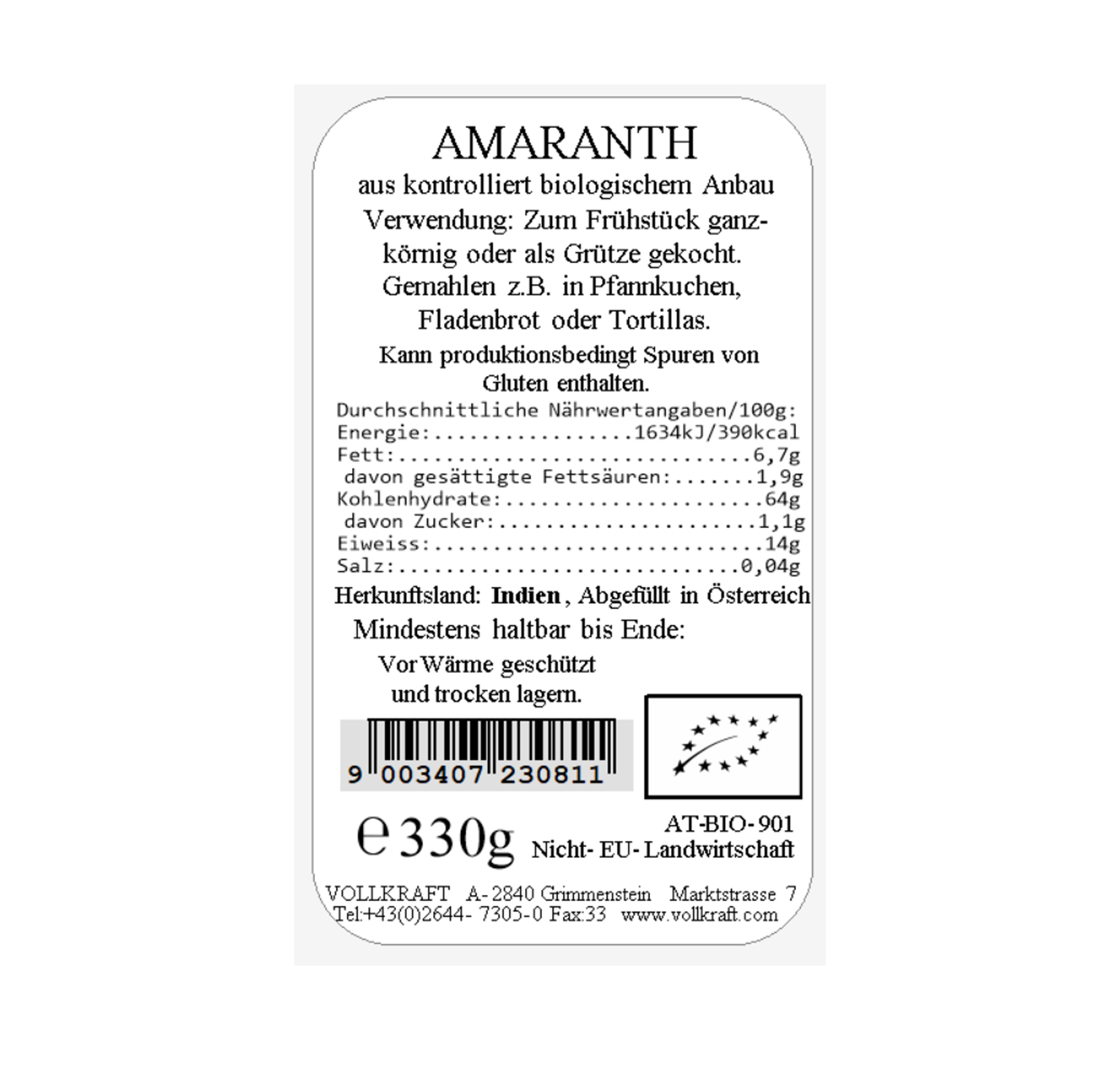 Produktinformationen "Amaranth Bio 330g Vollkraft"