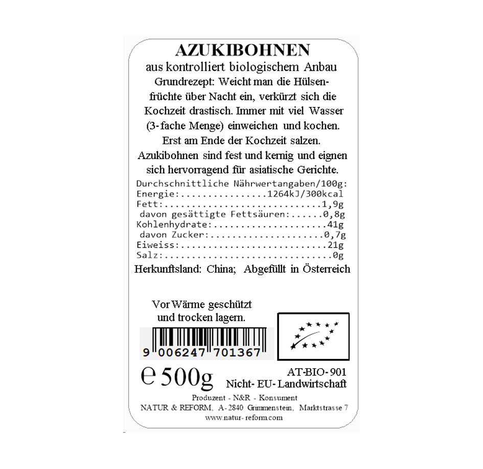 Produktinformationen "Azukibohnen Bio 500g Natur & Reform"