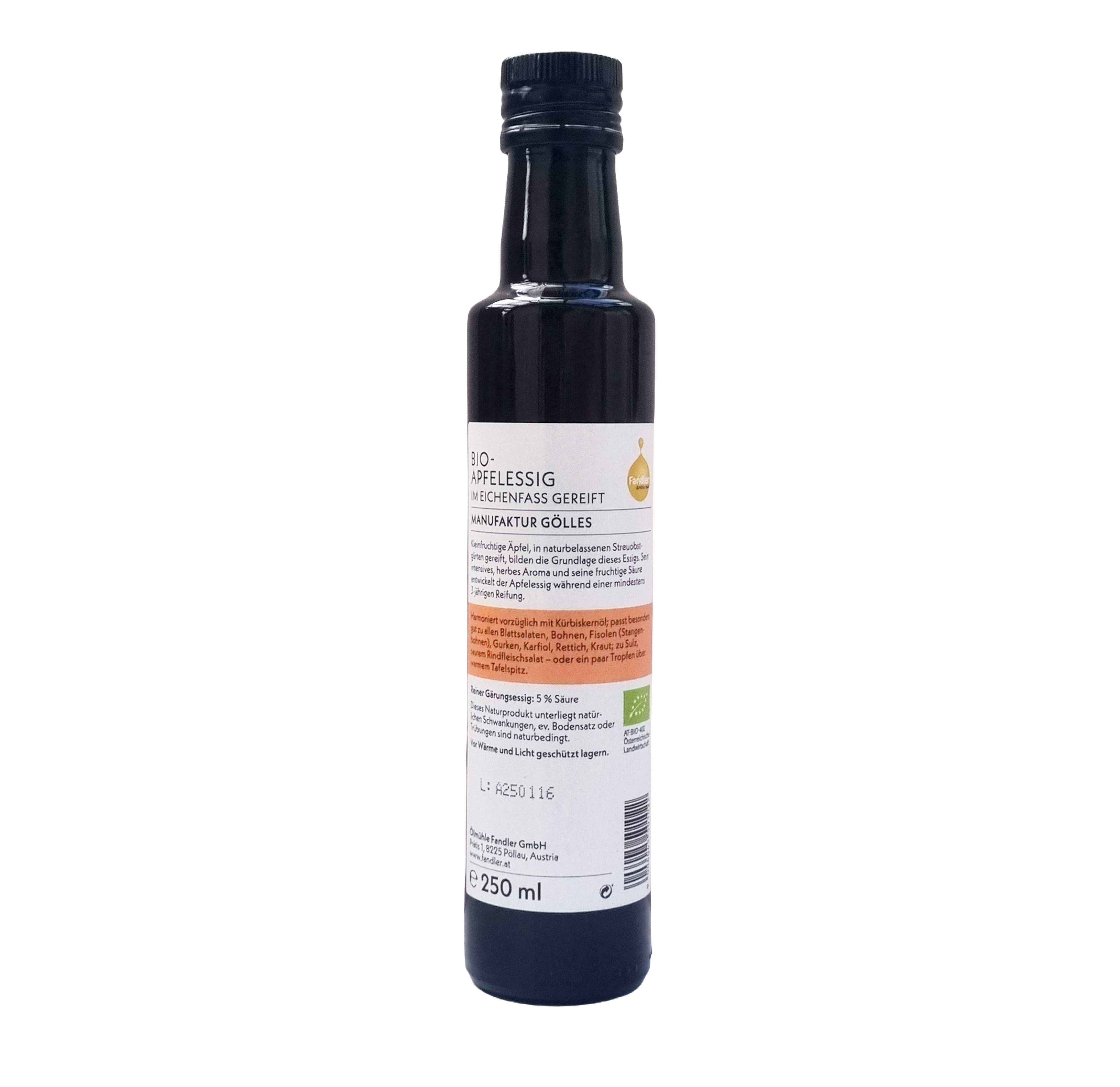 Fandler steht seit Generationen für echte Handwerkskunst und kompromisslose Bio-Qualität. Der Bio Apfelessig wird durch natürliche Fermentation gewonnen, schonend verarbeitet und gänzlich ohne künstliche Zusätze abgefüllt. Das Ergebnis ist ein authentischer, kraftvoller Essig, der die volle Aromatik der verwendeten Äpfel bewahrt. Nachhaltig hergestellt, naturbelassen und reich an Charakter – ein Produkt, das Genuss und Bewusstsein perfekt vereint.
