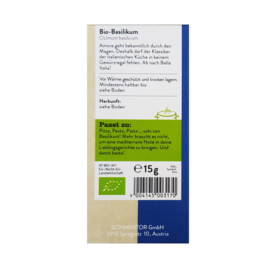 Mediterraner Zauber für deine Küche – Bio Basilikum geschnitten 15g von Sonnentor
