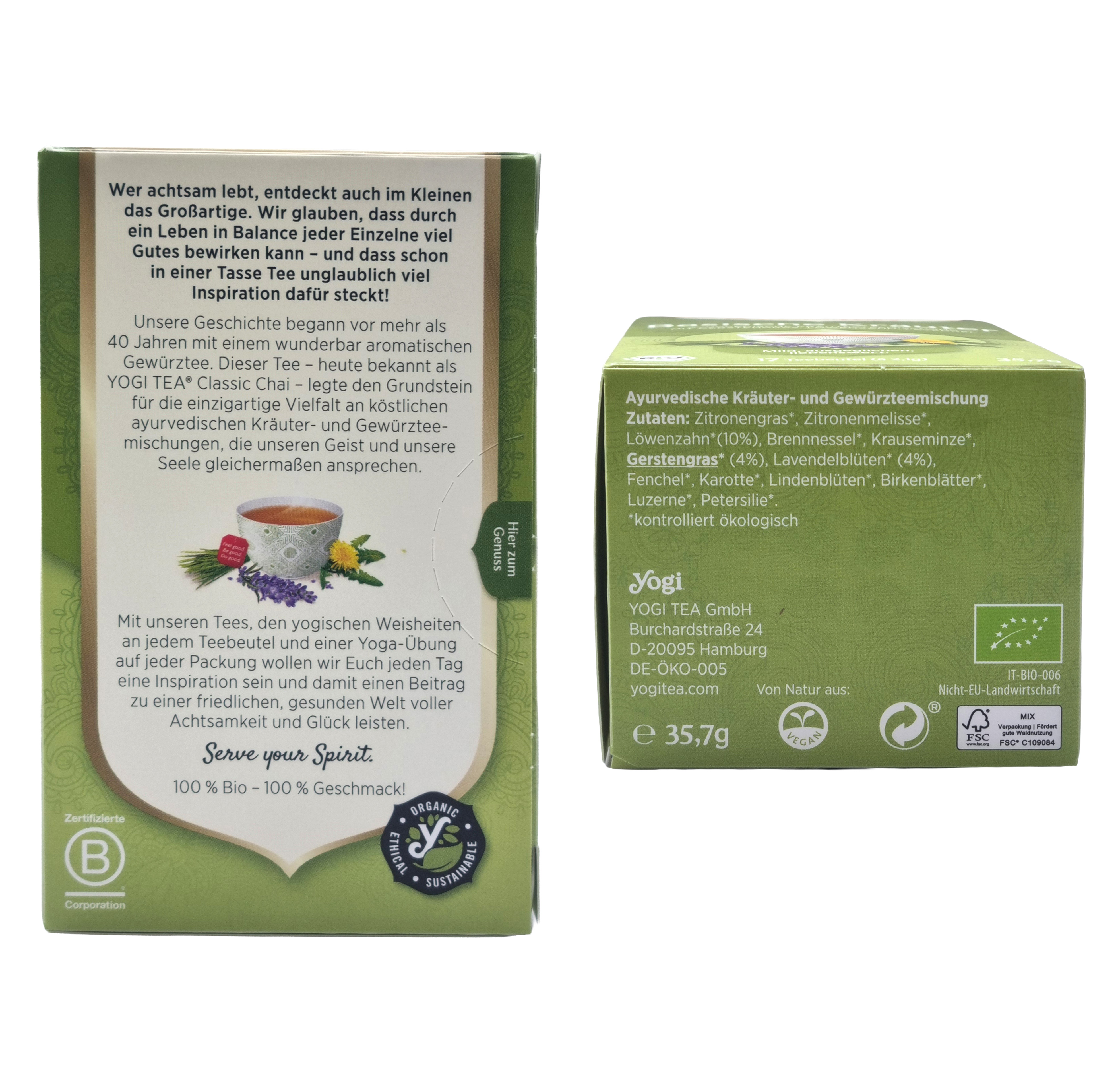 Verpackt in 17 liebevoll gestalteten Teebeuteln ist jeder Aufguss ein kleines Ritual. Der YOGI TEE eignet sich ideal als Geschenk oder um sich selbst etwas Gutes zu tun. Einfach den Beutel in heißes Wasser geben, kurz ziehen lassen und genießen – für einen Moment, der nur dir gehört.