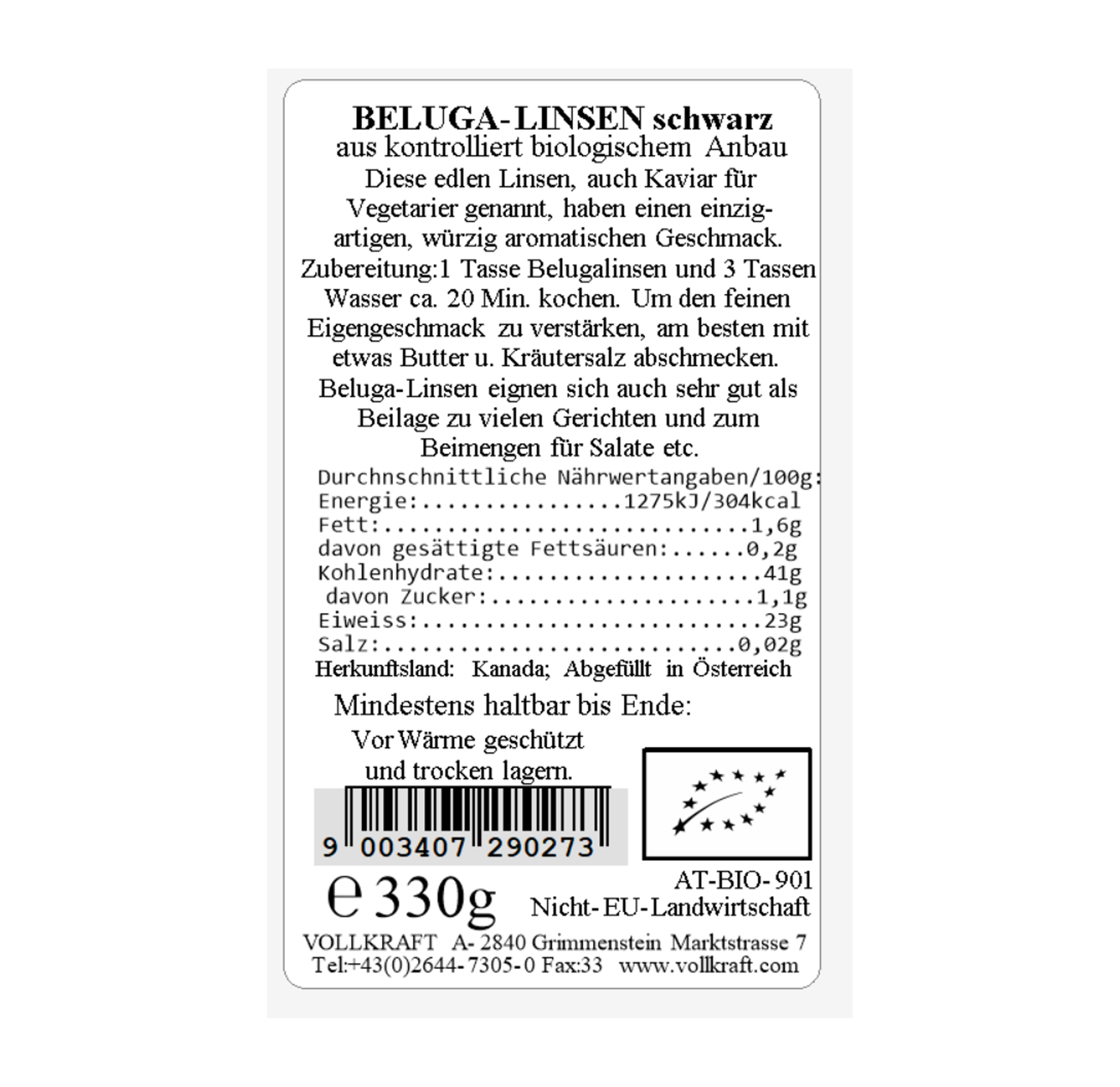 Produktinformationen "Beluga schwarze Linsen Bio 330g"