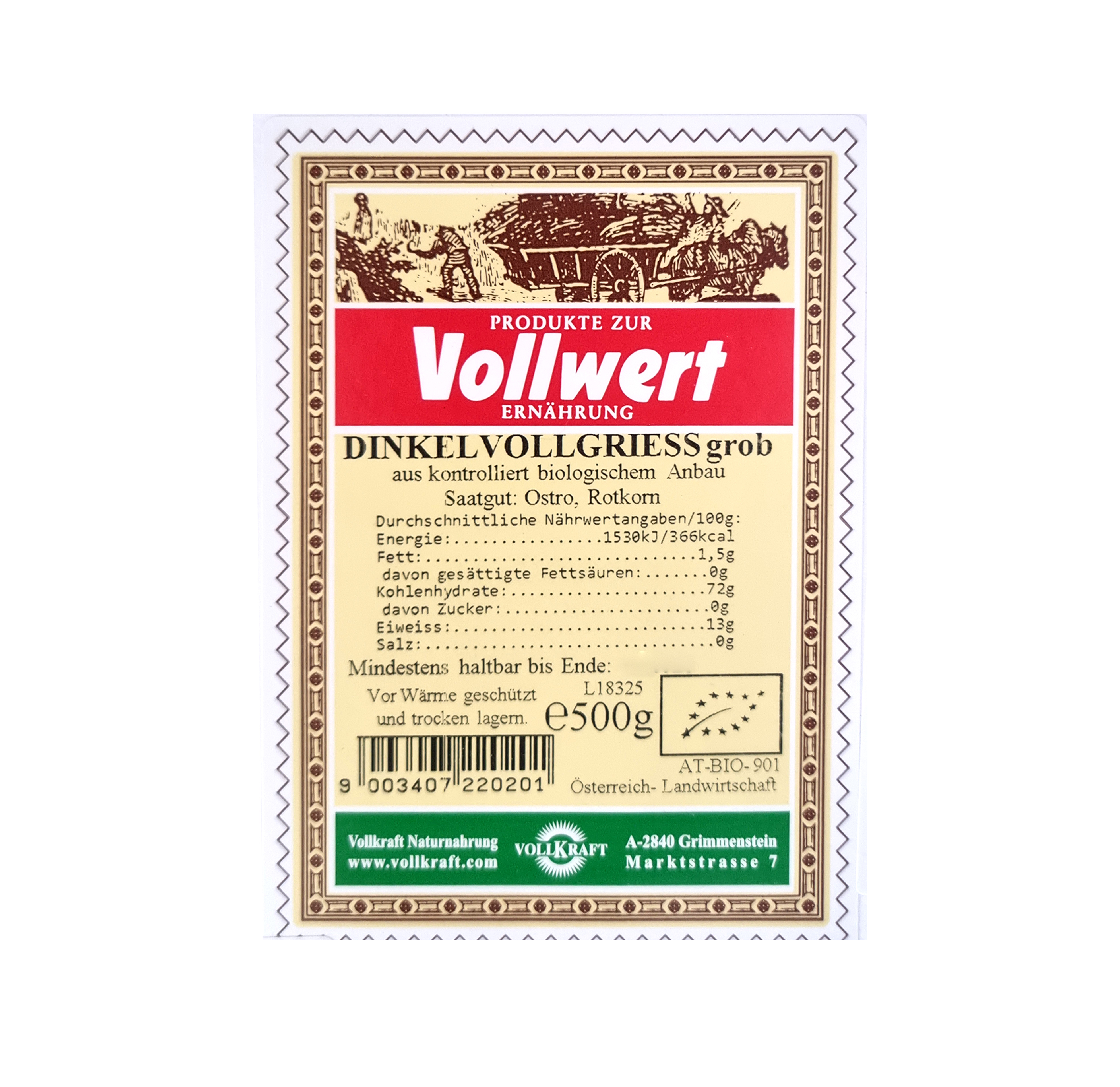 Produktinformationen "Bio Dinkelvollgrieß grob 500g Vollkraft"