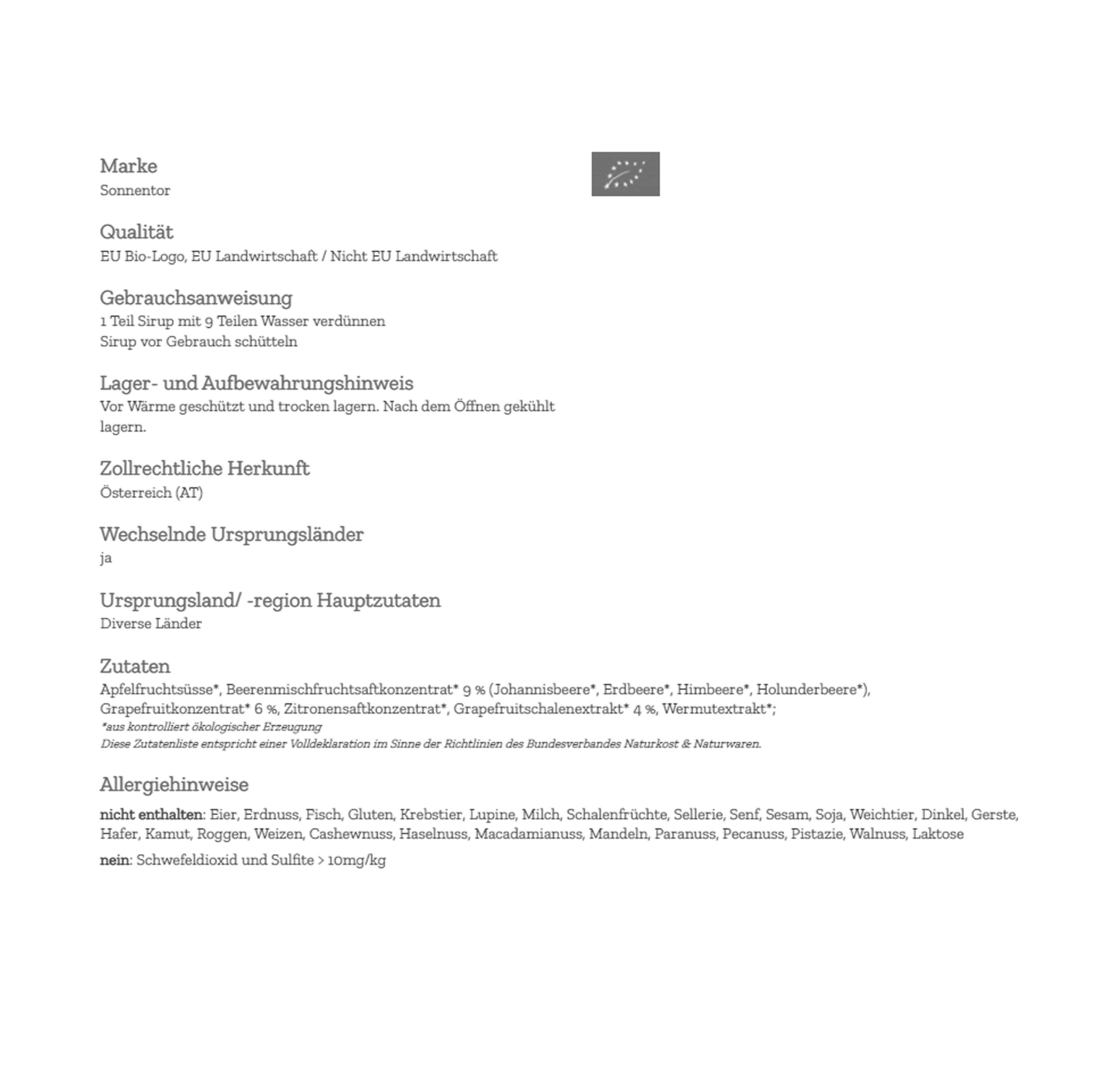 Produktinformationen "Bio Wilde Lilli Sirup 0,5l Sonnentor"
