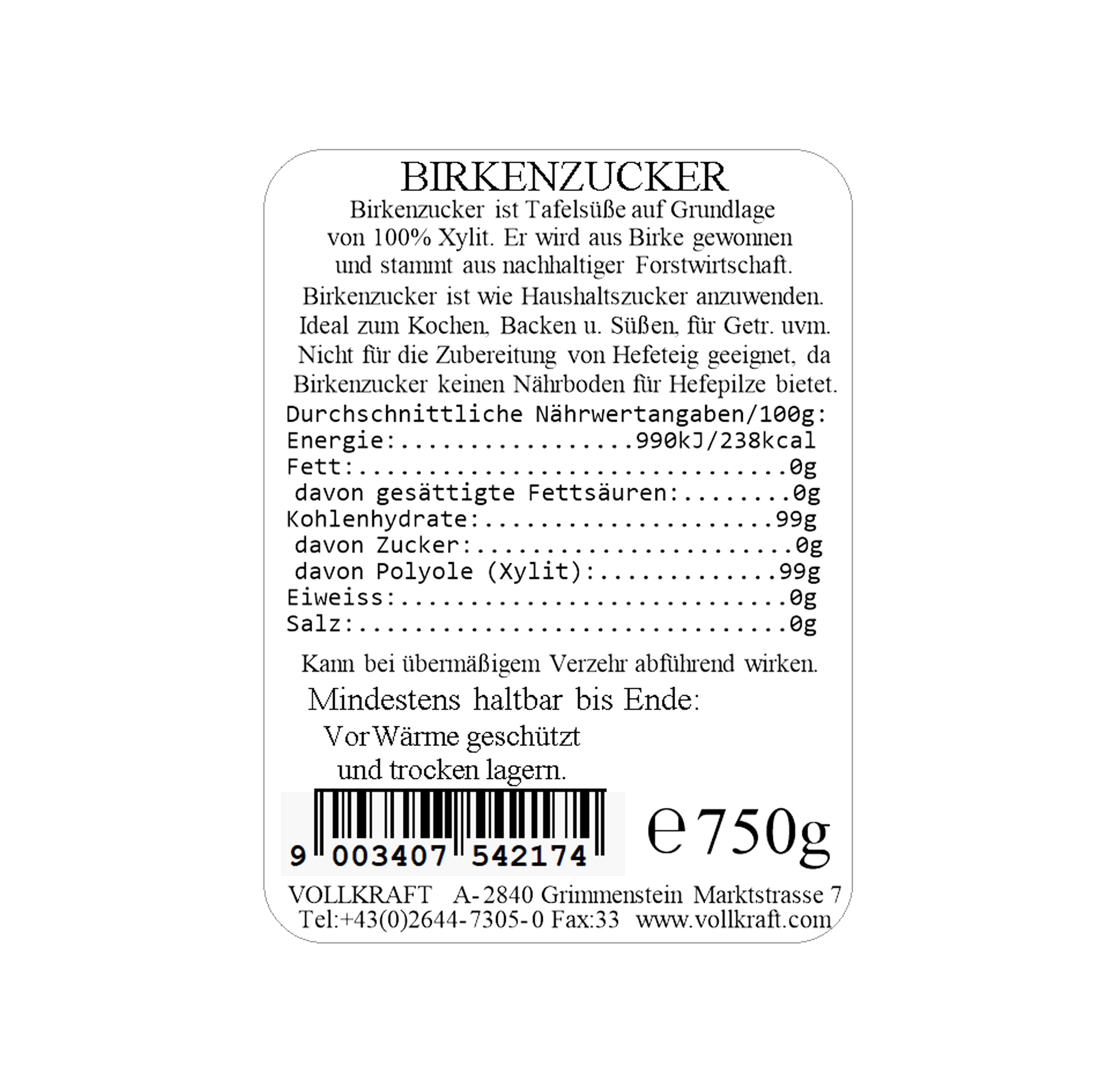 Produktinformationen "Birkenzucker 750g Vollkraft"