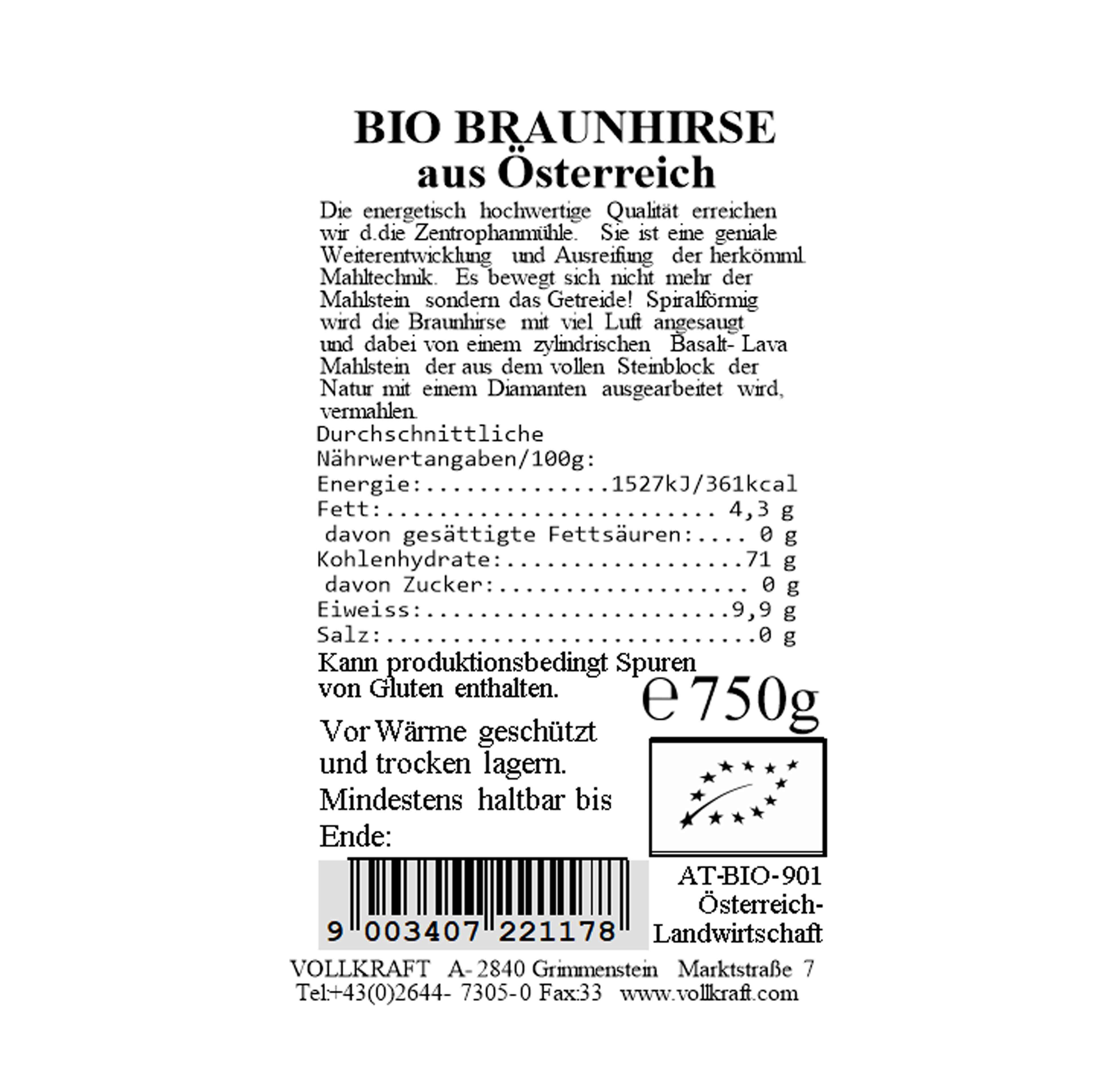 Produktinformationen "Braunhirse zentrofan vermahlen Bio 750g Vollkraft"