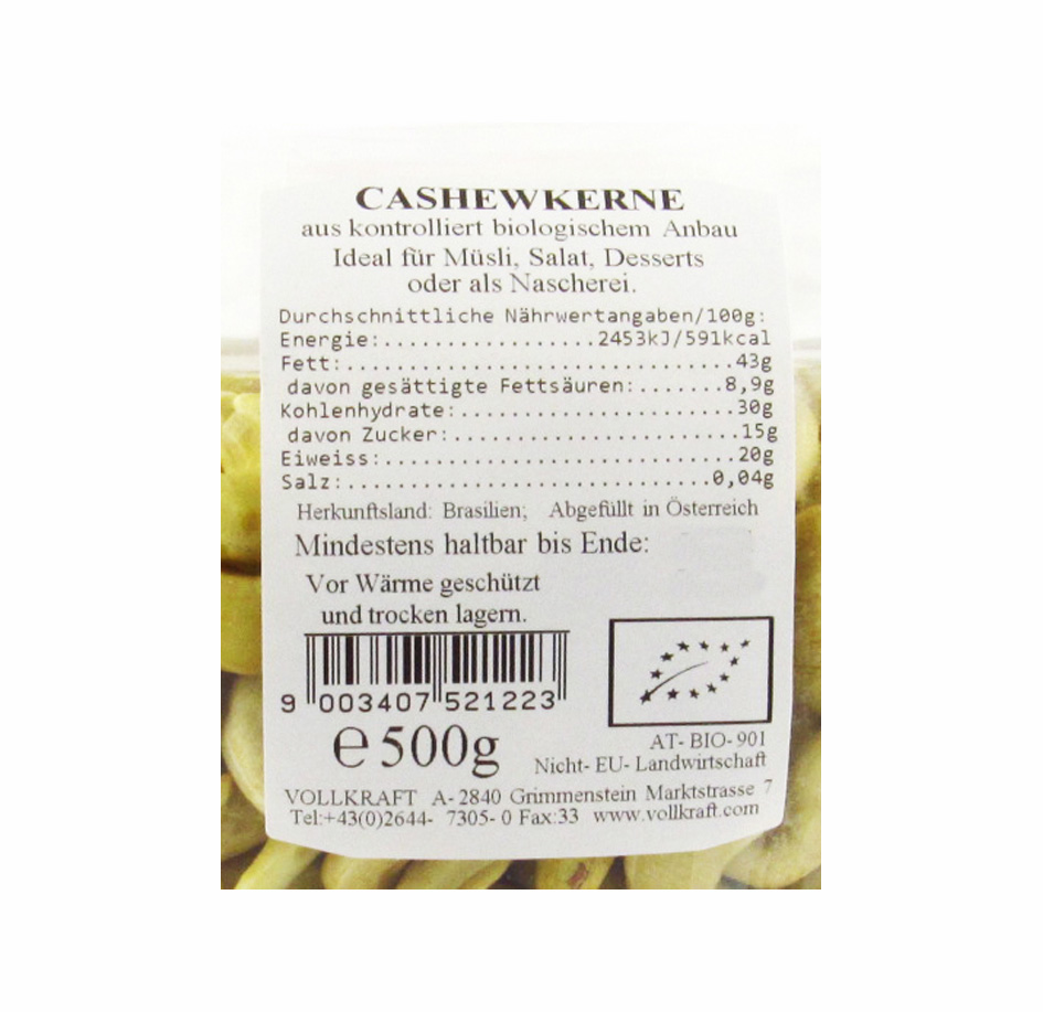 Produktinformationen "Cashewkerne Bio 500g - Sondergröße Vollkraft"