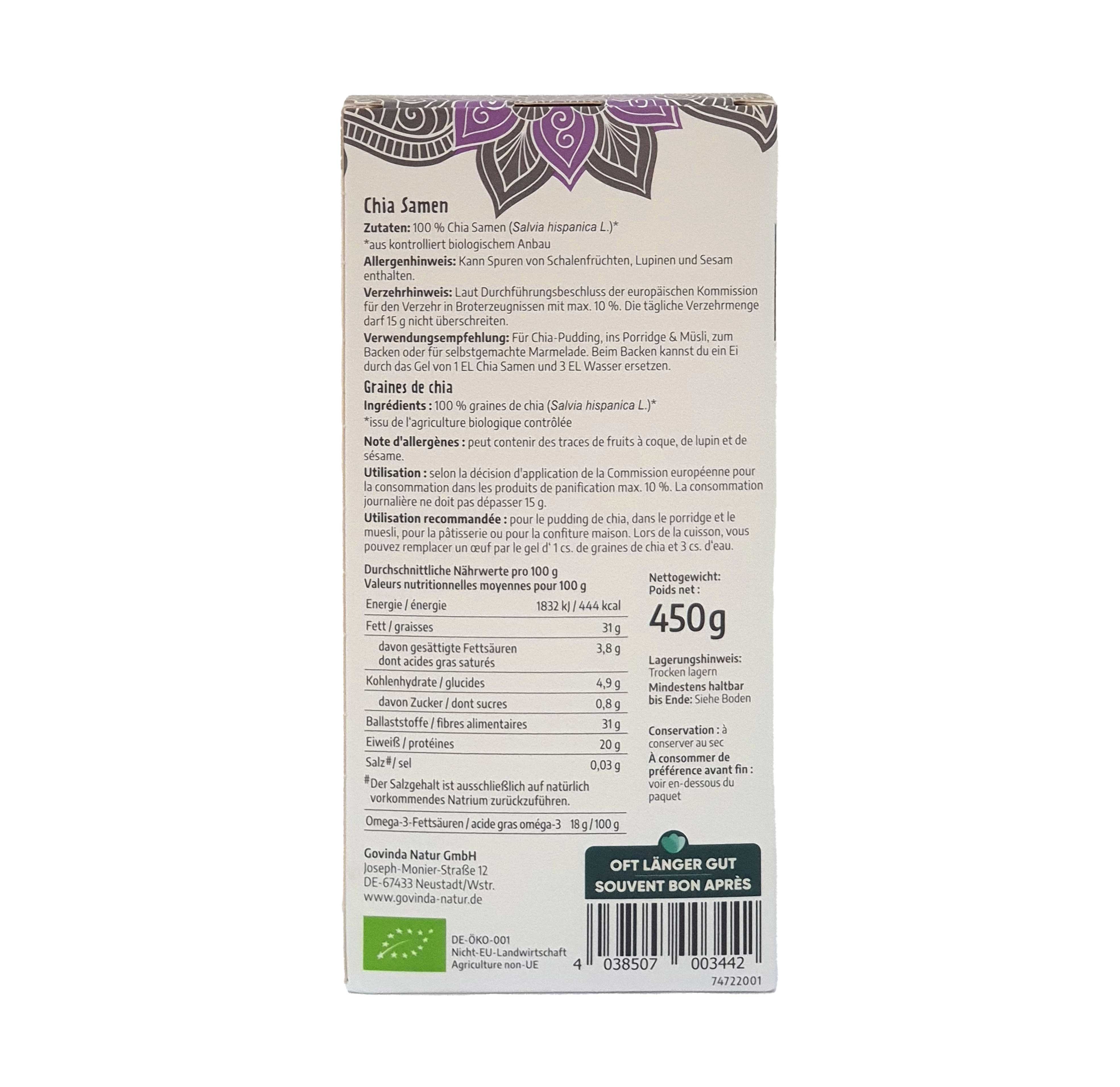 Produktinformationen "Chiasamen 450g Bio Govinda"