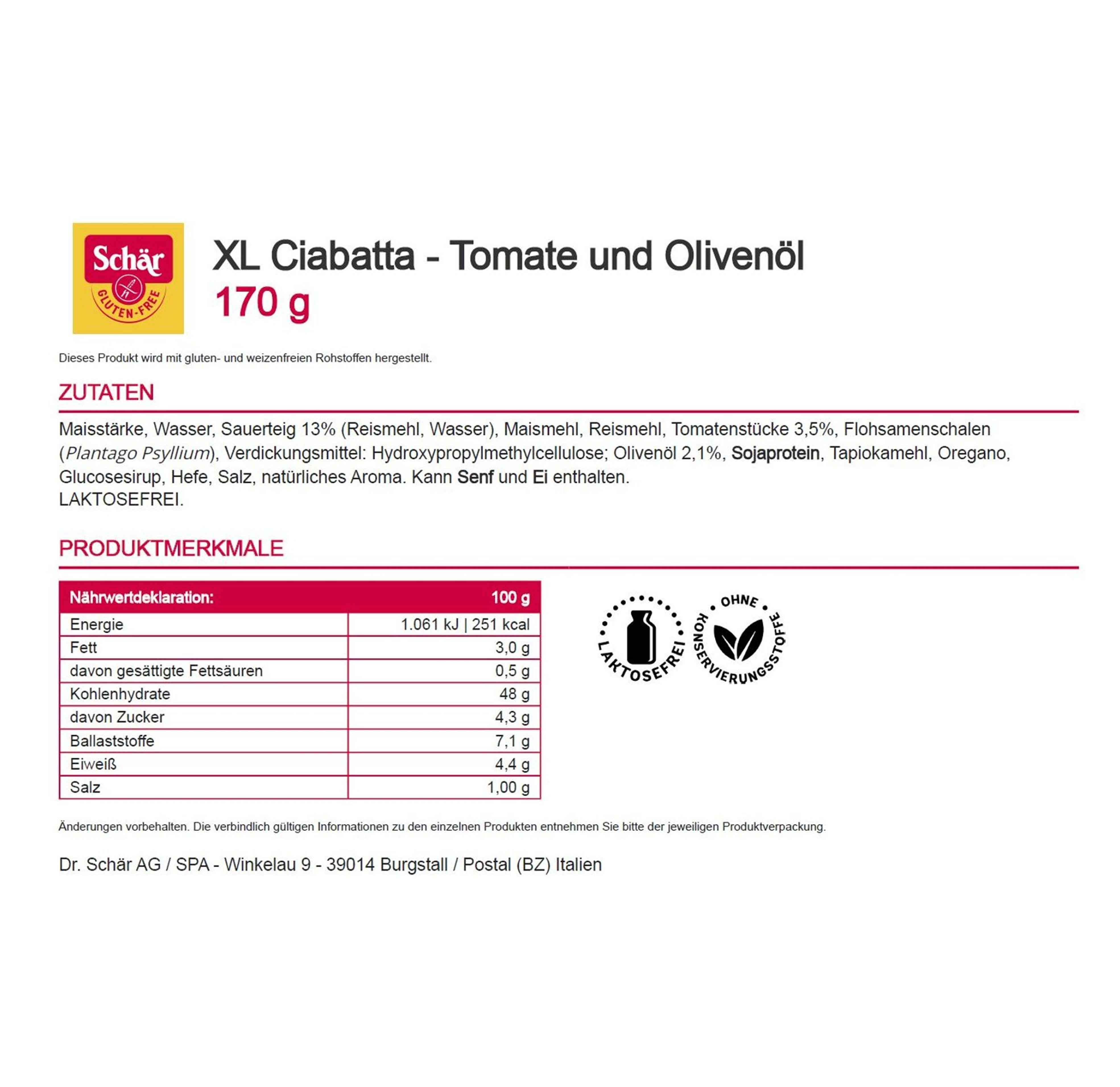 Produktinformationen "Ciabatta XL - Tomate und Olivenöl glutenfrei 170g Schär "
