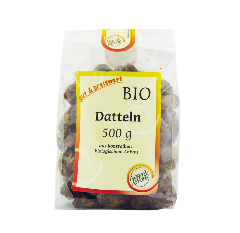Erleben Sie die unvergleichliche Süße und Qualität der Datteln Bio 500g von Natur & Reform. Diese zarten, saftigen Datteln stammen aus kontrolliert biologischem Anbau und bieten Ihnen eine köstliche Möglichkeit, sich gesund zu verwöhnen. Mit ihrem intensiven, natürlichen Geschmack sind sie die perfekte Alternative zu raffiniertem Zucker und bieten eine gesunde Möglichkeit, sich einen energieliefernden Snack zu gönnen. Ideal für Naschkatzen, die auf Qualität und Nachhaltigkeit setzen!