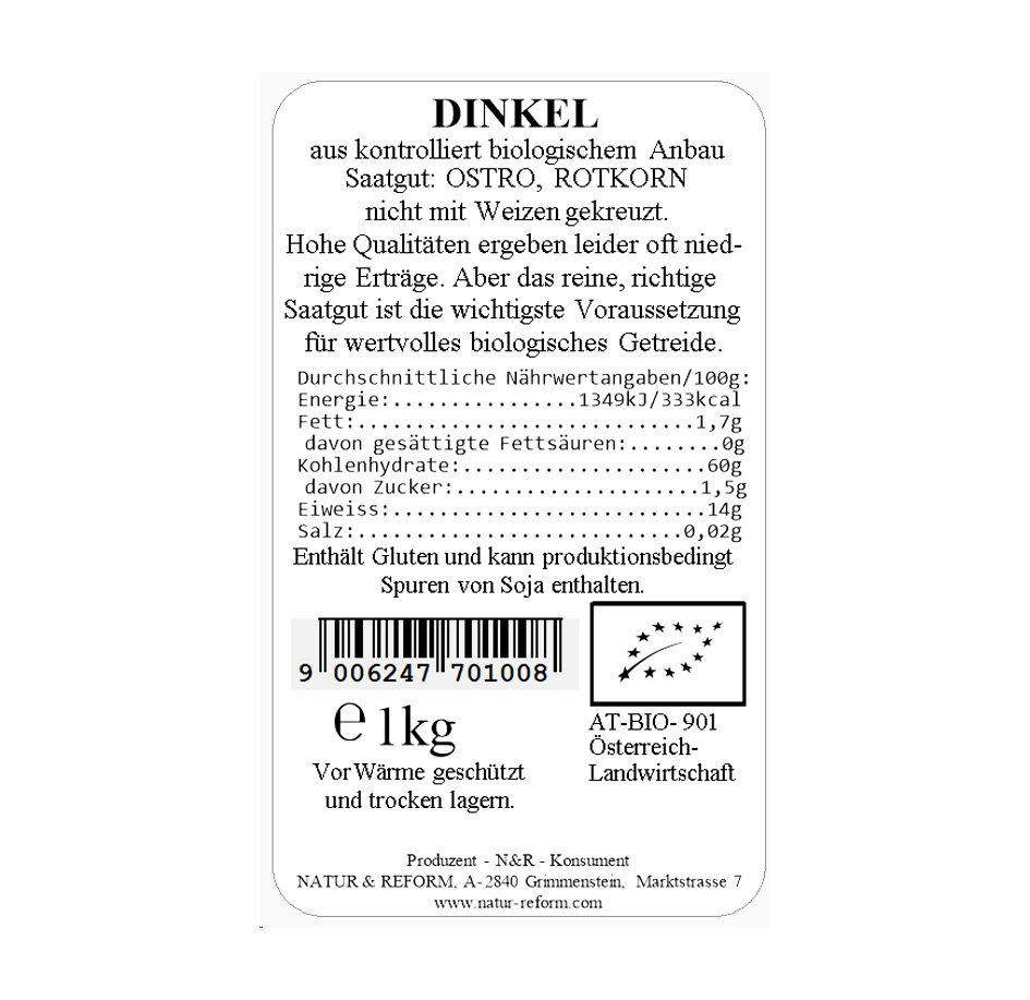 Produktinformationen "Dinkel Bio 1 Kg Natur & Reform"