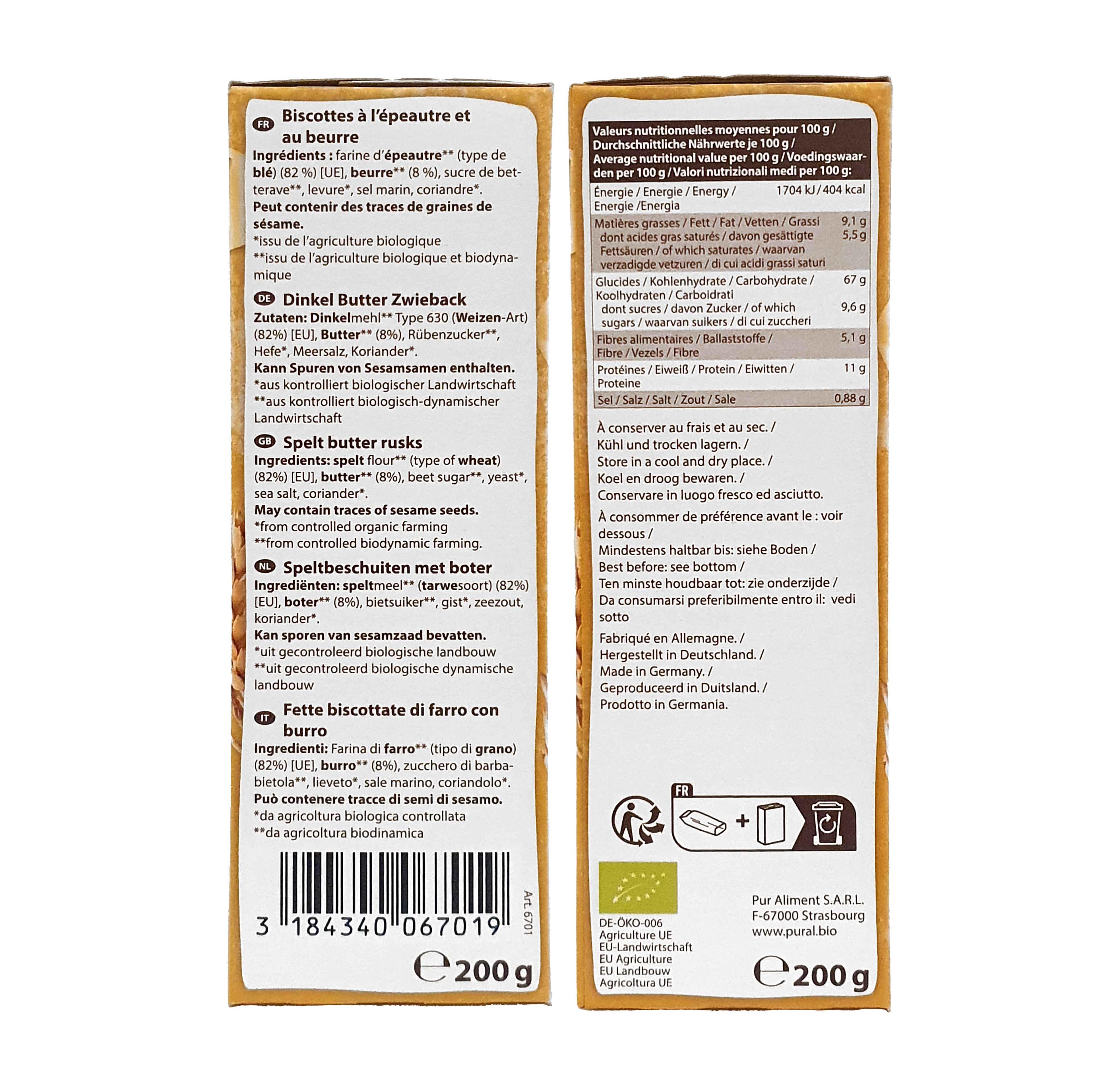 Produktinformationen "Dinkel-Butter-Zwieback Biscottes Bio 200g Pural"