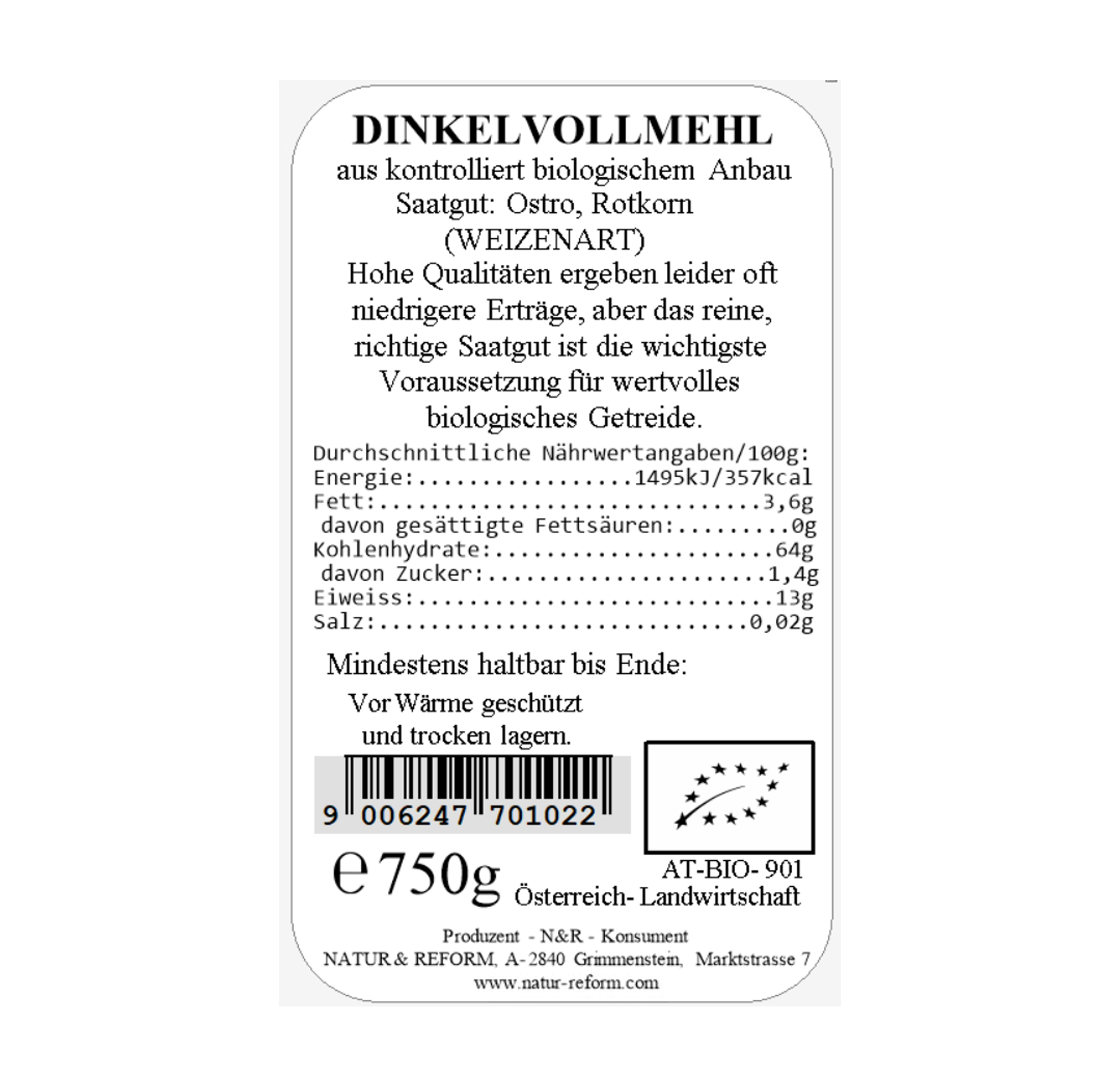 Produktinformationen "Dinkelvollmehl Bio 750g Natur & Reform"