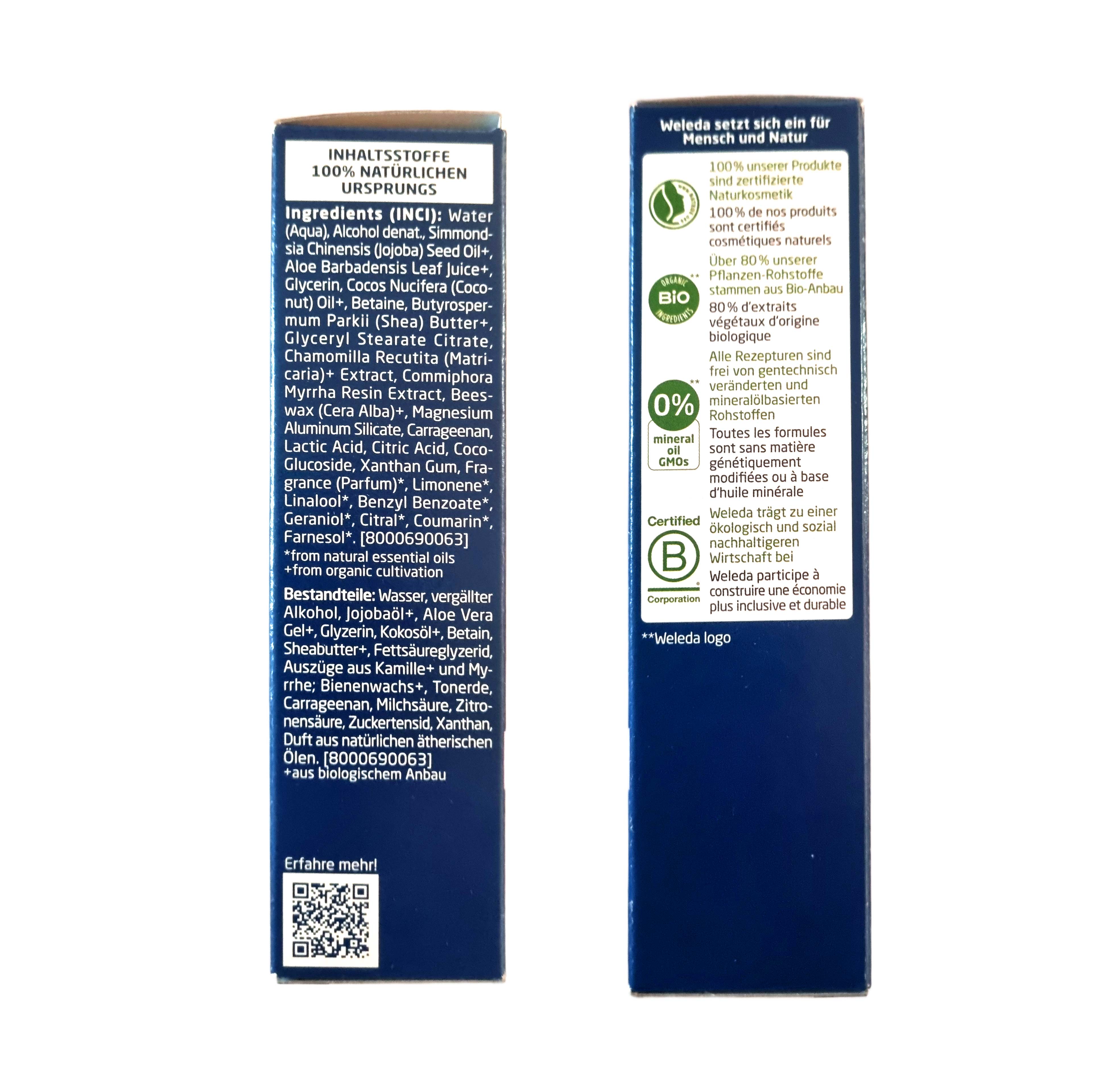 Weleda After Shave Balsam pflegt und beruhigt natürlich frisch. Extrakte von Kamille und Myrrhe pflegen die von der Trocken- oder Nassrasur beanspruchten Haut auf besonders milde Weise. Das kühlende und feuchtigkeitsspendende Aloe Vera-Gel sowie wertvolles Jojobaöl schützen die Gesichtshaut vor dem Austrocknen und machen sie weich und geschmeidig. Rosmarin, Litsea Cubeba und Tonka geben dem Weleda After Shave Balsam hat einen milden und angenehm erfrischenden Duft. Reduziert rasurbedingte Hautirritationen Spendet intensive und langanhaltende Feuchtigkeit Für alle Hauttypen geeignet, einschließlich empfindlicher Haut Hautverträglichkeit dermatologisch bestätigt.