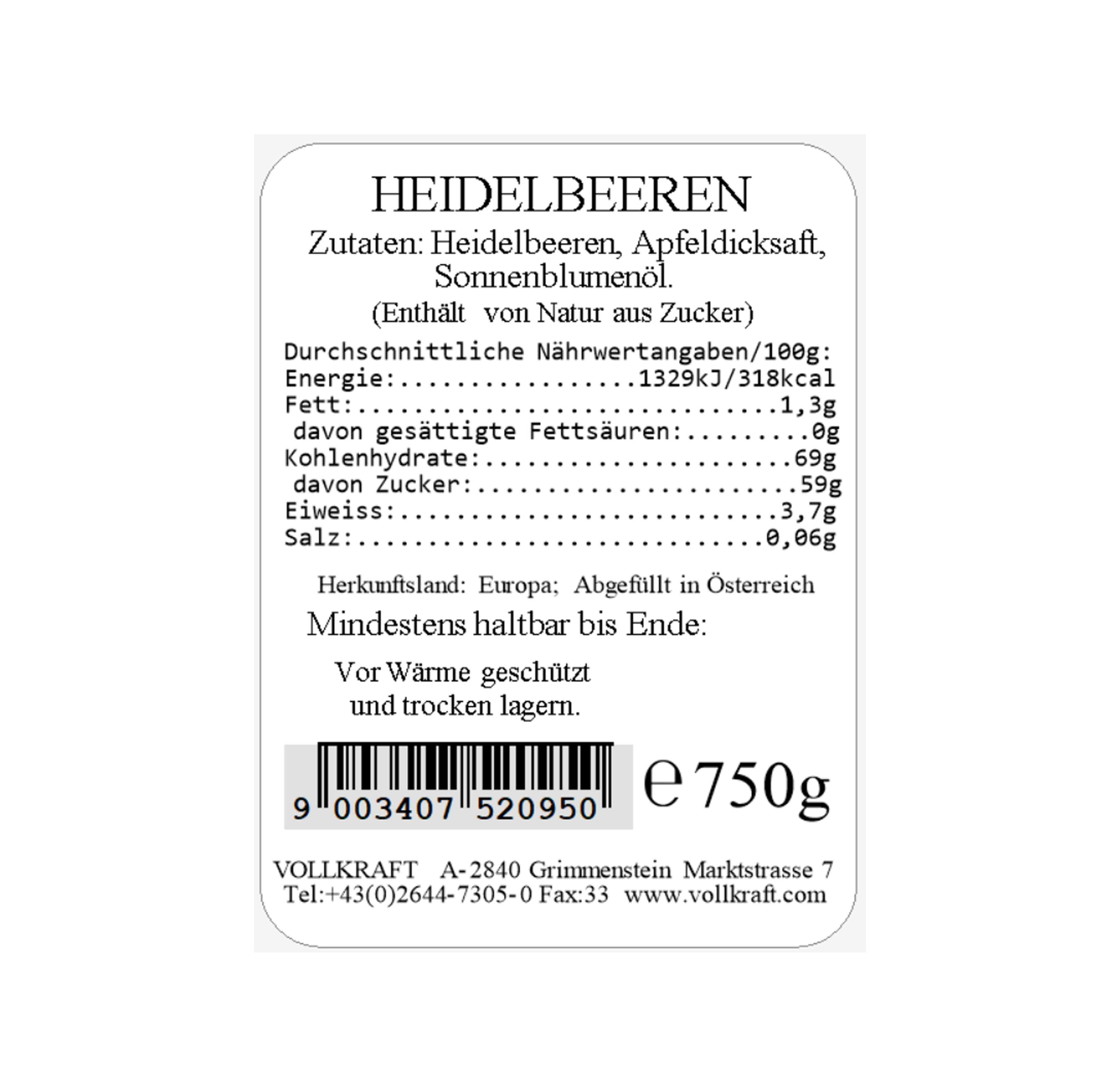 Heidelbeeren Box 750g Vollkraft