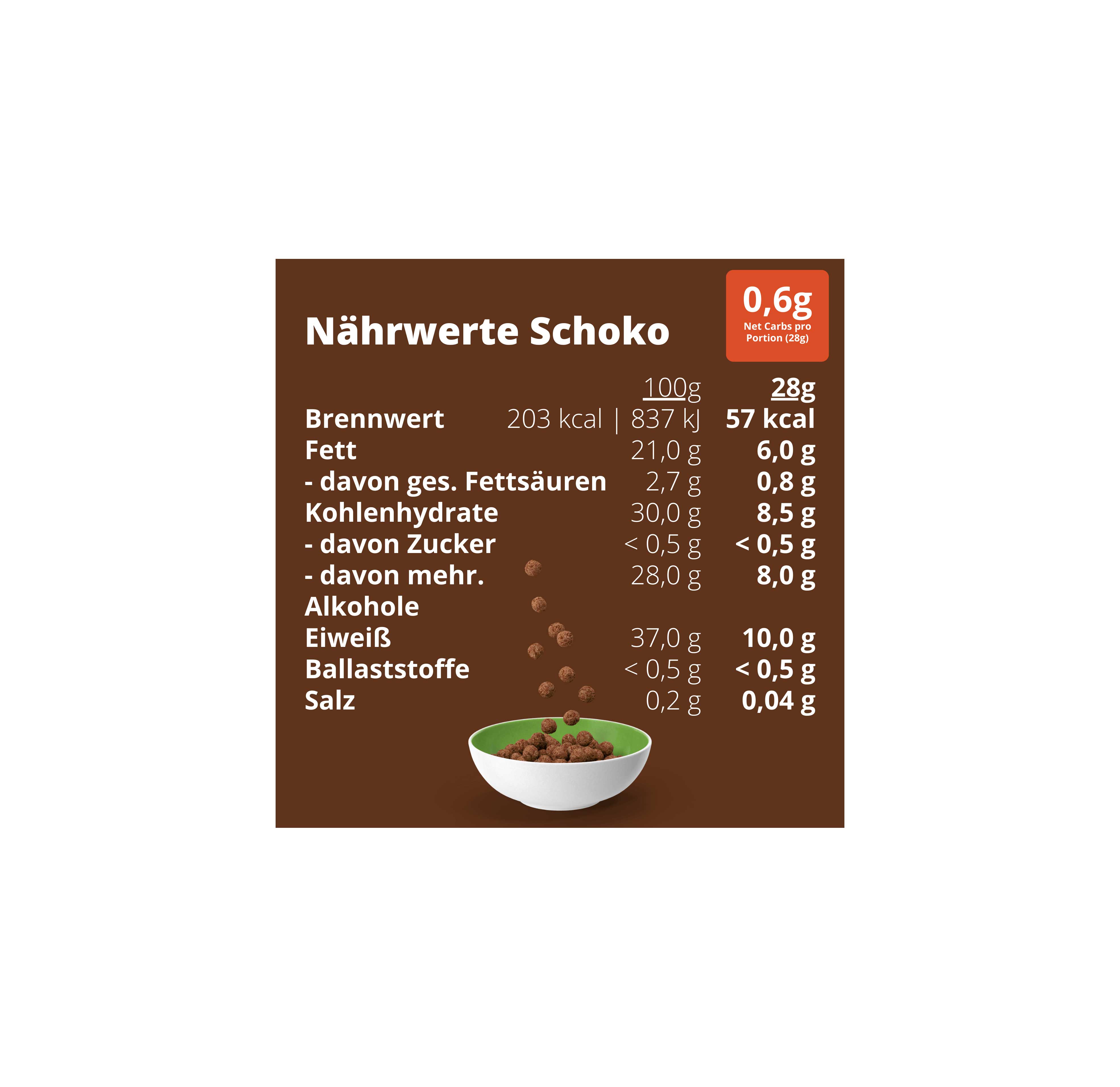 Mit dem Keto Müsli Schoko starten Sie genussvoll und voller Energie in den Tag! Diese leckeren Schoko-Pops sind perfekt für eine Lower-Carb- oder Keto-Ernährung. Voller Proteine und nur 0,6 g verwertbaren Kohlenhydraten pro Portion, bietet dieses Müsli den idealen Geschmack, ganz ohne Zuckerzusatz.