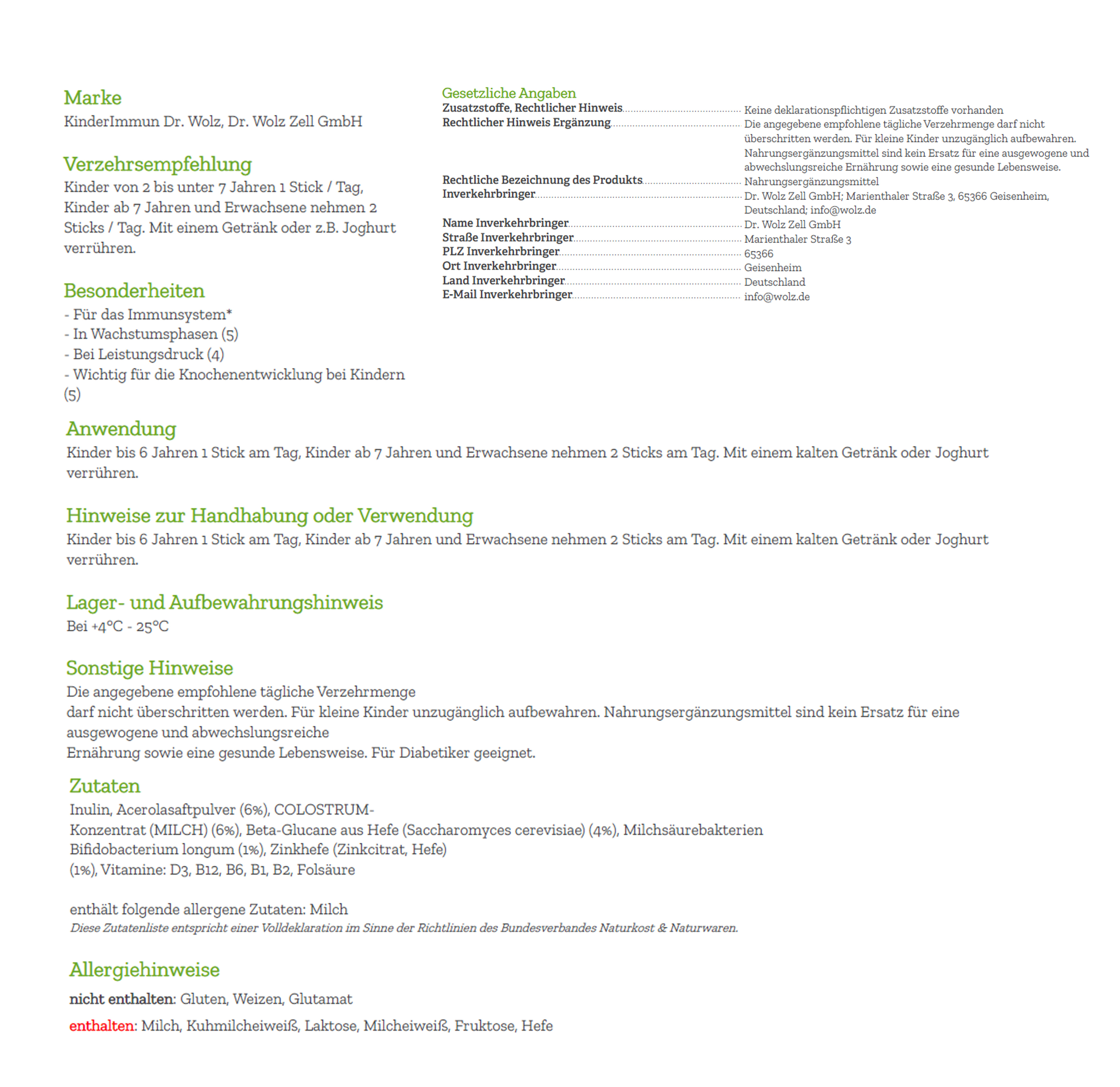 Produktinformationen "KinderImmun, 30 Sticks Dr. Wolz"
