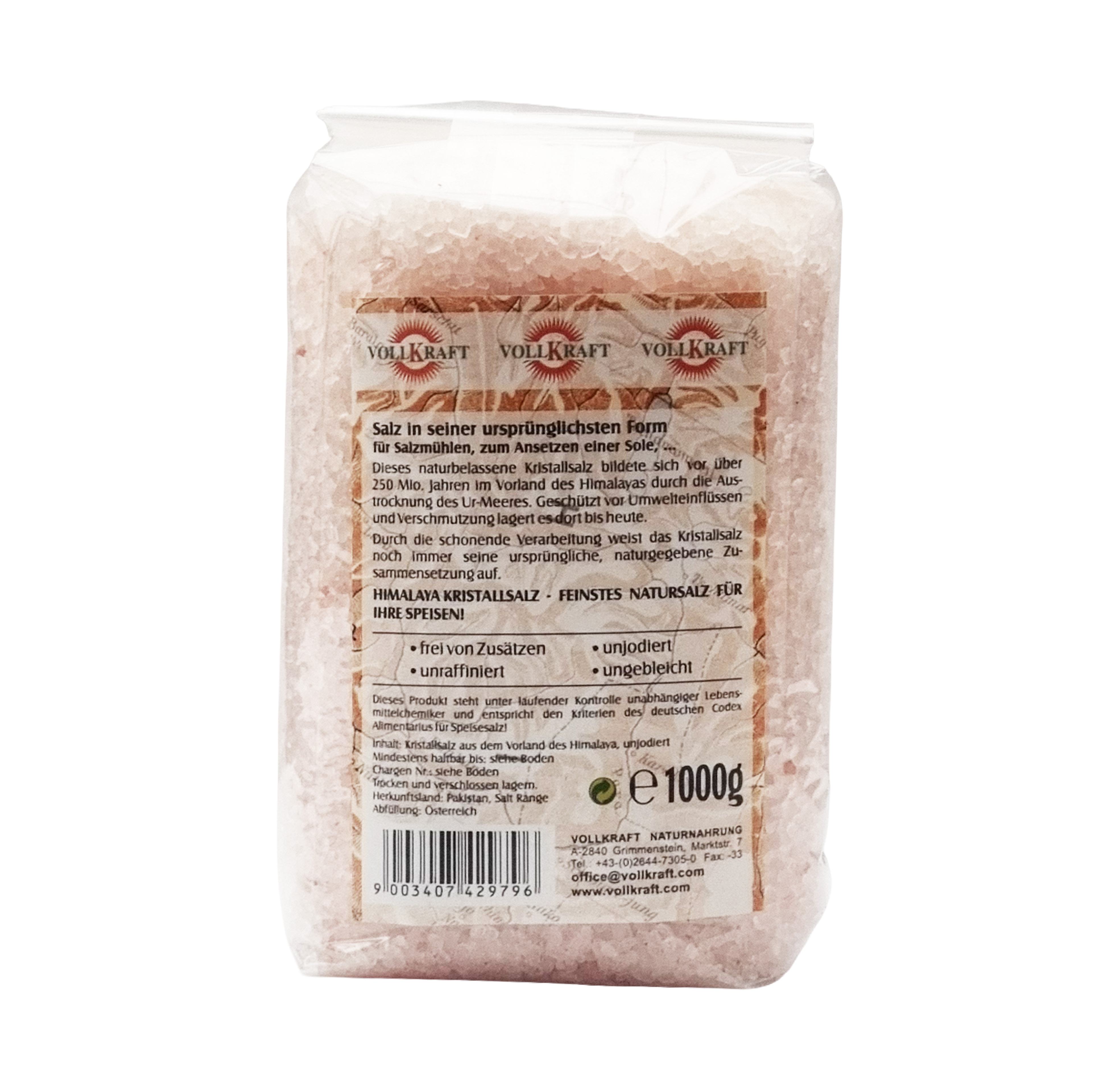 Vollkraft Himalaya Kristallsalz ist frei von Zusätzen, unraffiniert, unjodiert, ungebleicht