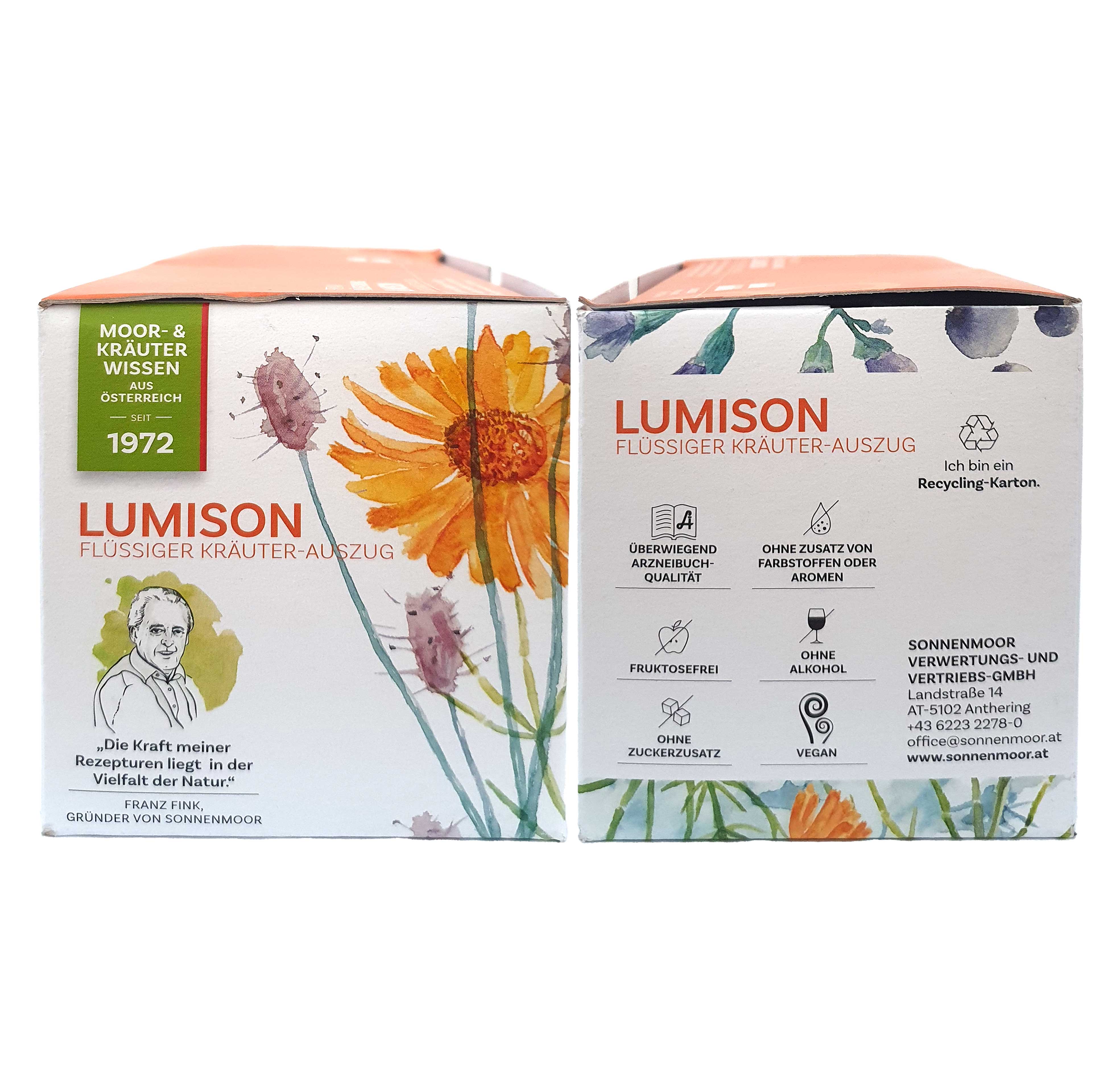 Seit Jahrzehnten steht SonnenMoor für Qualität, Naturverbundenheit und nachhaltige Produktphilosophie. Auch bei Lumison wird auf Natürlichkeit, Regionalität und ressourcenschonende Herstellung geachtet. Die Verbindung aus traditionellen Rezepturen und modernen Standards schafft Vertrauen – Flasche für Flasche. Wer auf Natürlichkeit setzt, trifft mit Lumison die richtige Wahl.