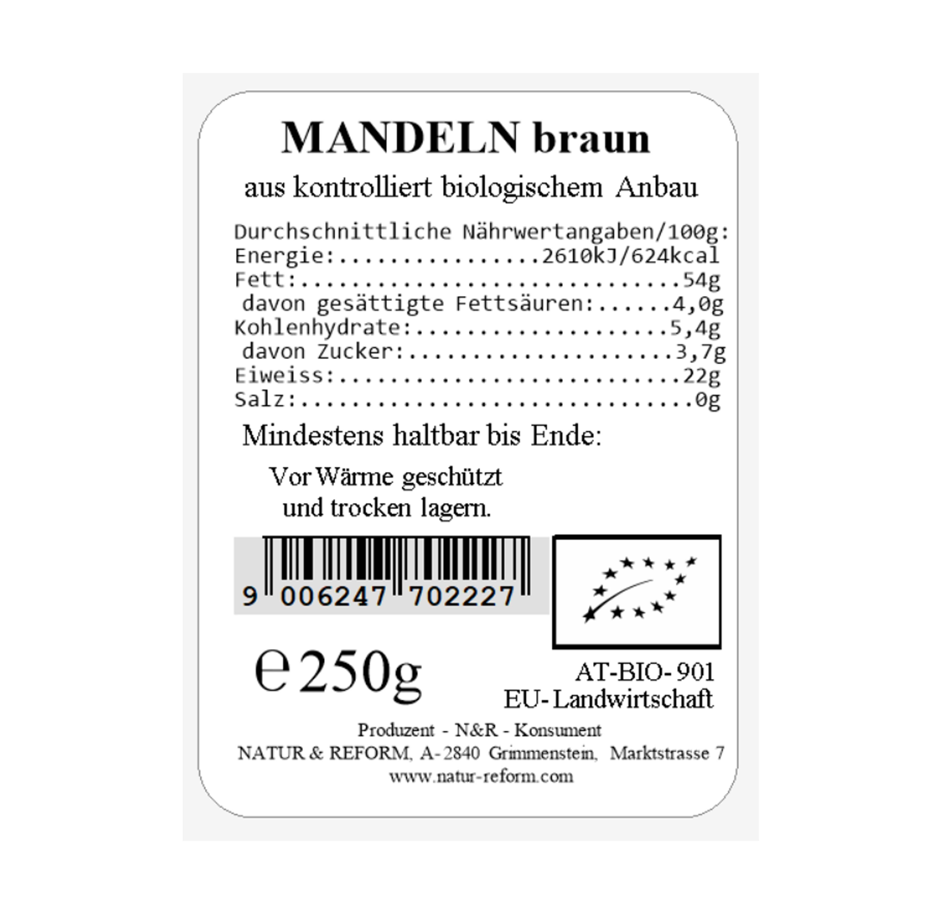 Produktinformationen "Mandeln braun Bio 250g Natur & Reform"