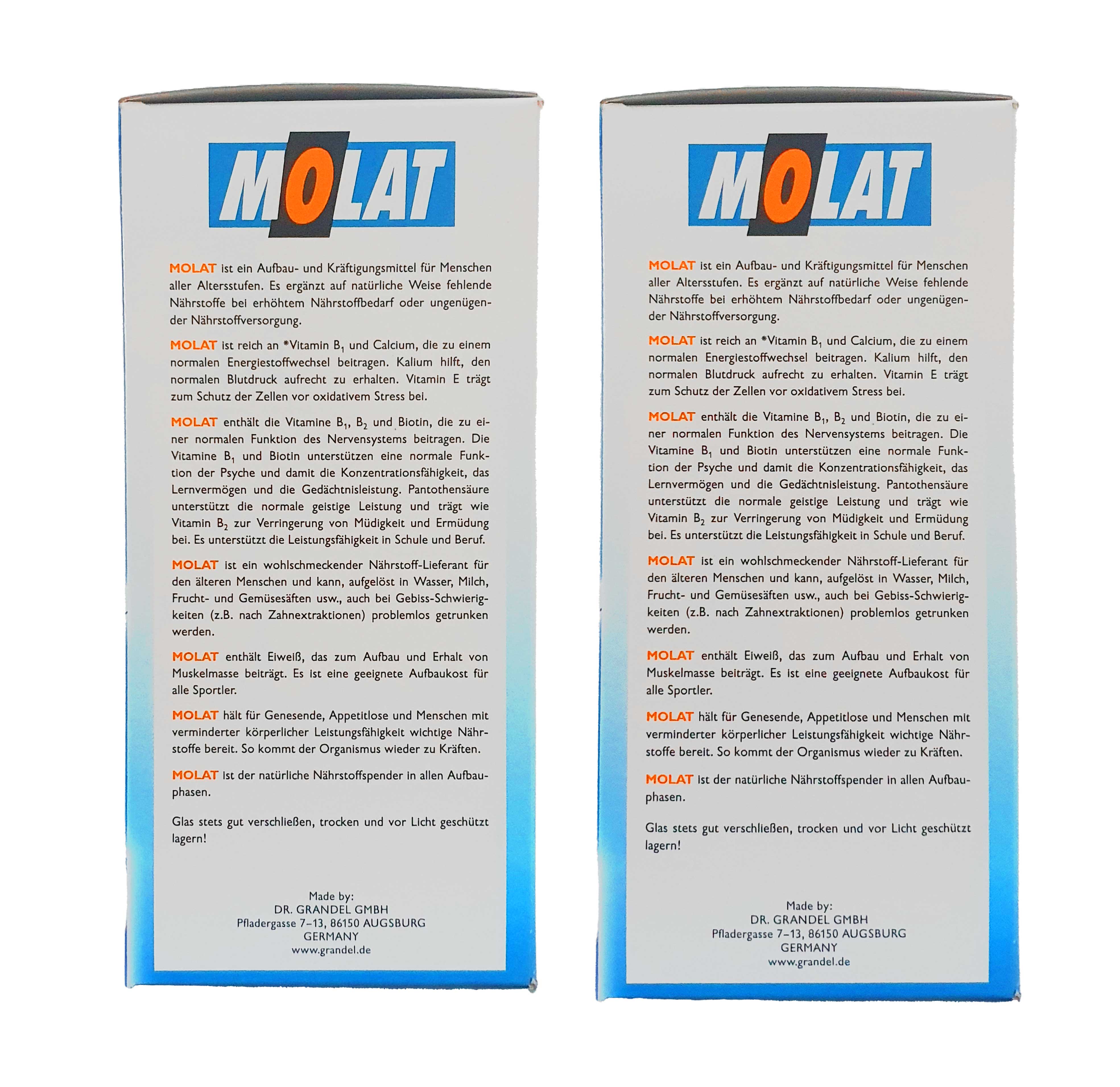 Molat von Dr. Grandel ist eine hochwertige Mineralstoffmischung, die mit wertvollen Nährstoffen versorgt, was Ihrem Körper täglich guttun kann. Mit seiner ausgewogenen Zusammensetzung liefert Molat essentielle Mineralien, die für den Energiestoffwechsel und die allgemeine Vitalität wichtig sind. Es kann helfen, das Immunsystem zu stärken und für eine ausgewogene Mineralstoffversorgung zu sorgen. Besonders in stressigen Phasen oder bei erhöhter körperlicher Belastung kann Molat Ihre Energie steigern und Ihnen ein gutes Gefühl für den ganzen Tag geben.
