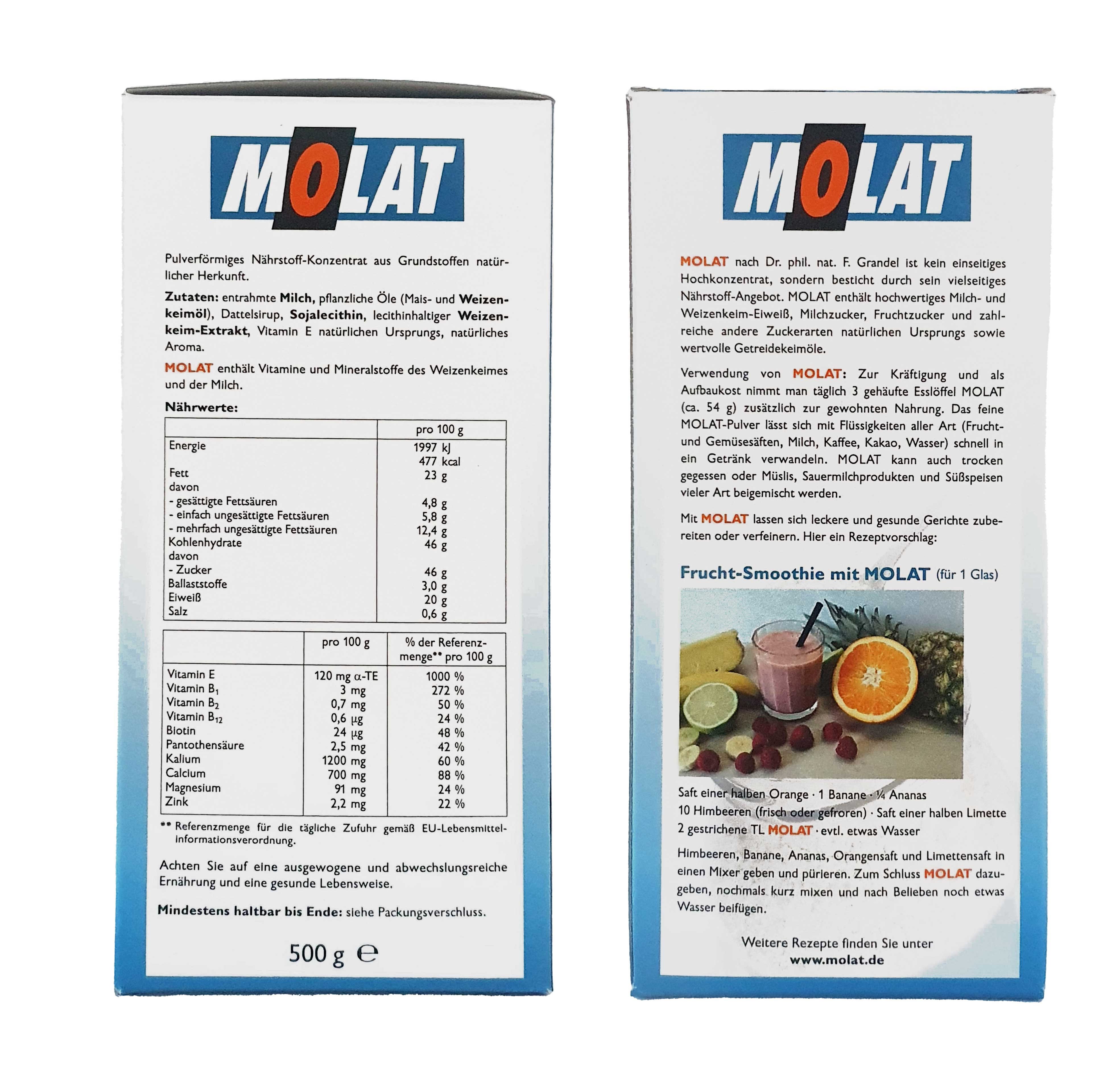 Die 500g-Packung von Molat ist perfekt für eine regelmäßige Anwendung in Ihrem Alltag geeignet. Ob als tägliche Nahrungsergänzung oder in speziellen Ernährungsplänen, Molat lässt sich einfach in Ihre Routine integrieren. Die vielseitige Verwendung macht es zu einer ausgezeichneten Wahl für jeden, der eine effektive Unterstützung seiner Gesundheit sucht. Einfach in Wasser oder anderen Getränken auflösen – und schon können Sie von den Vorteilen dieser Mineralstoffmischung profitieren.