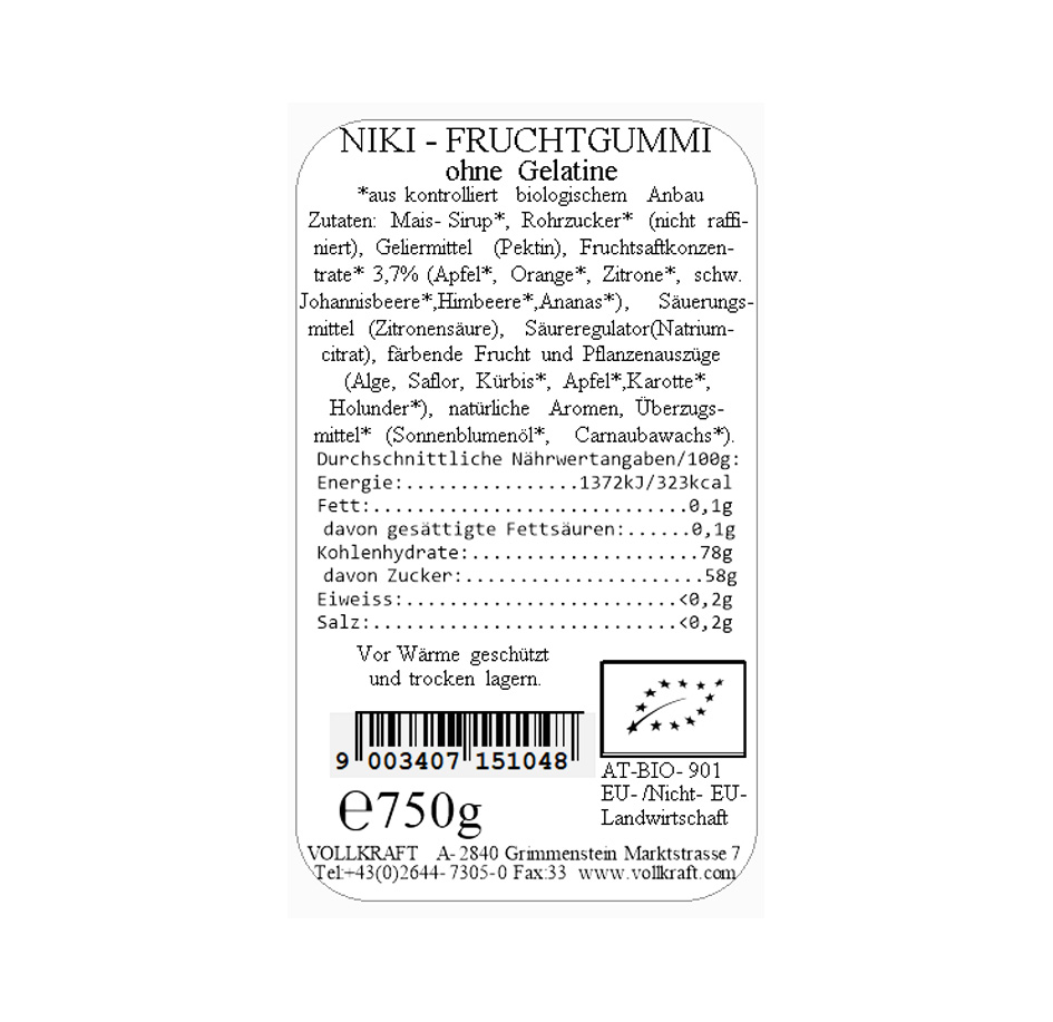 Produktinformationen "Niki's Fruchtgummi Bio Box 750g Vollkraft"