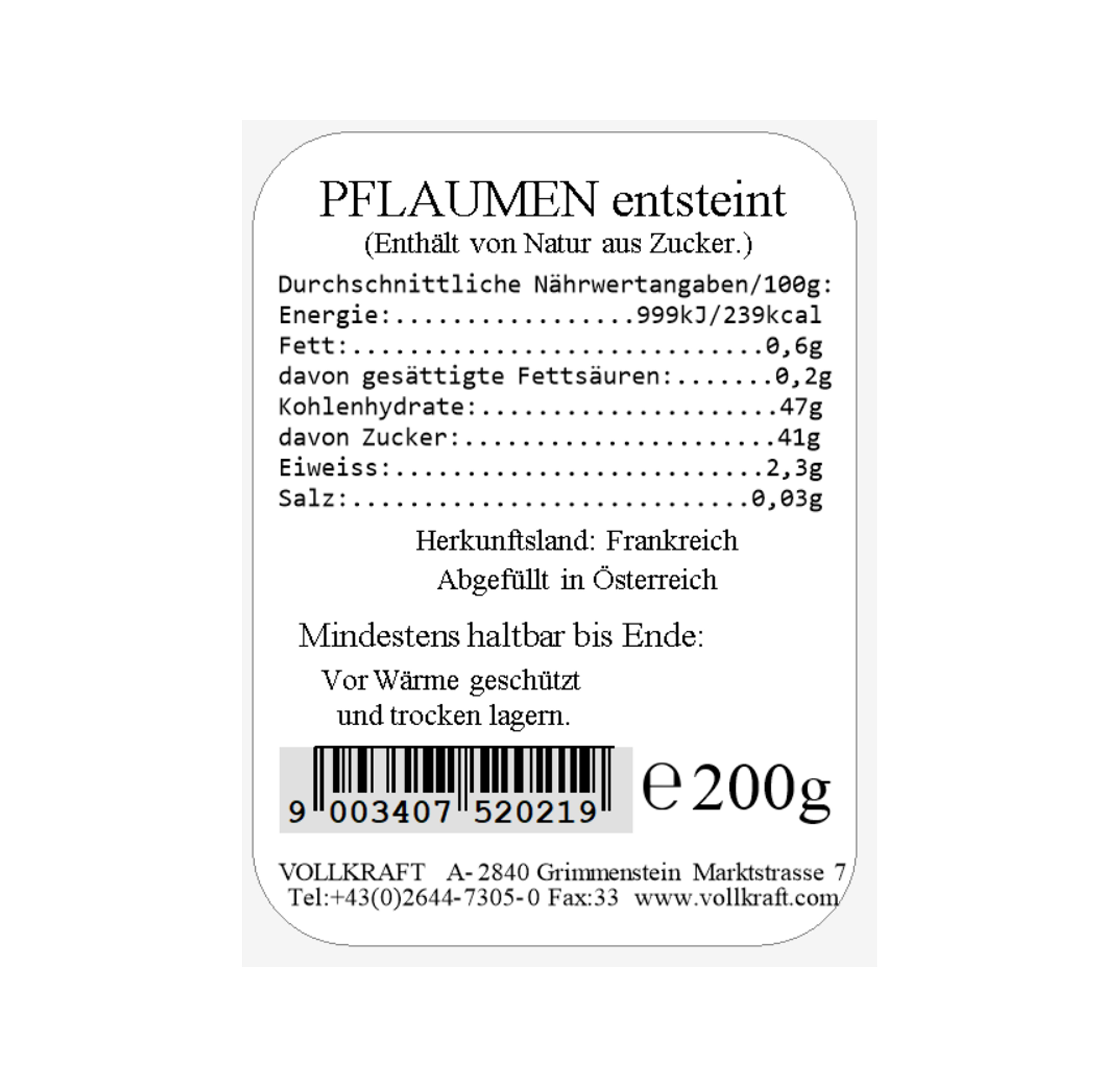 Produktinformationen "Pflaumen 200g Vollkraft"