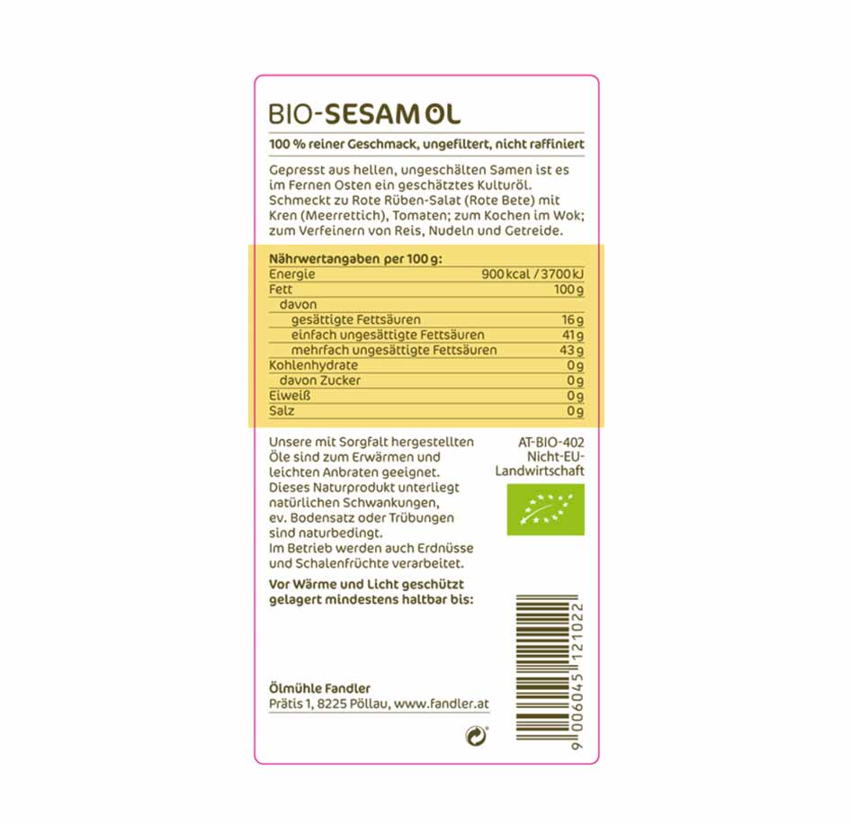 Produktinformationen "Sesamöl Bio 250ml Fandler"