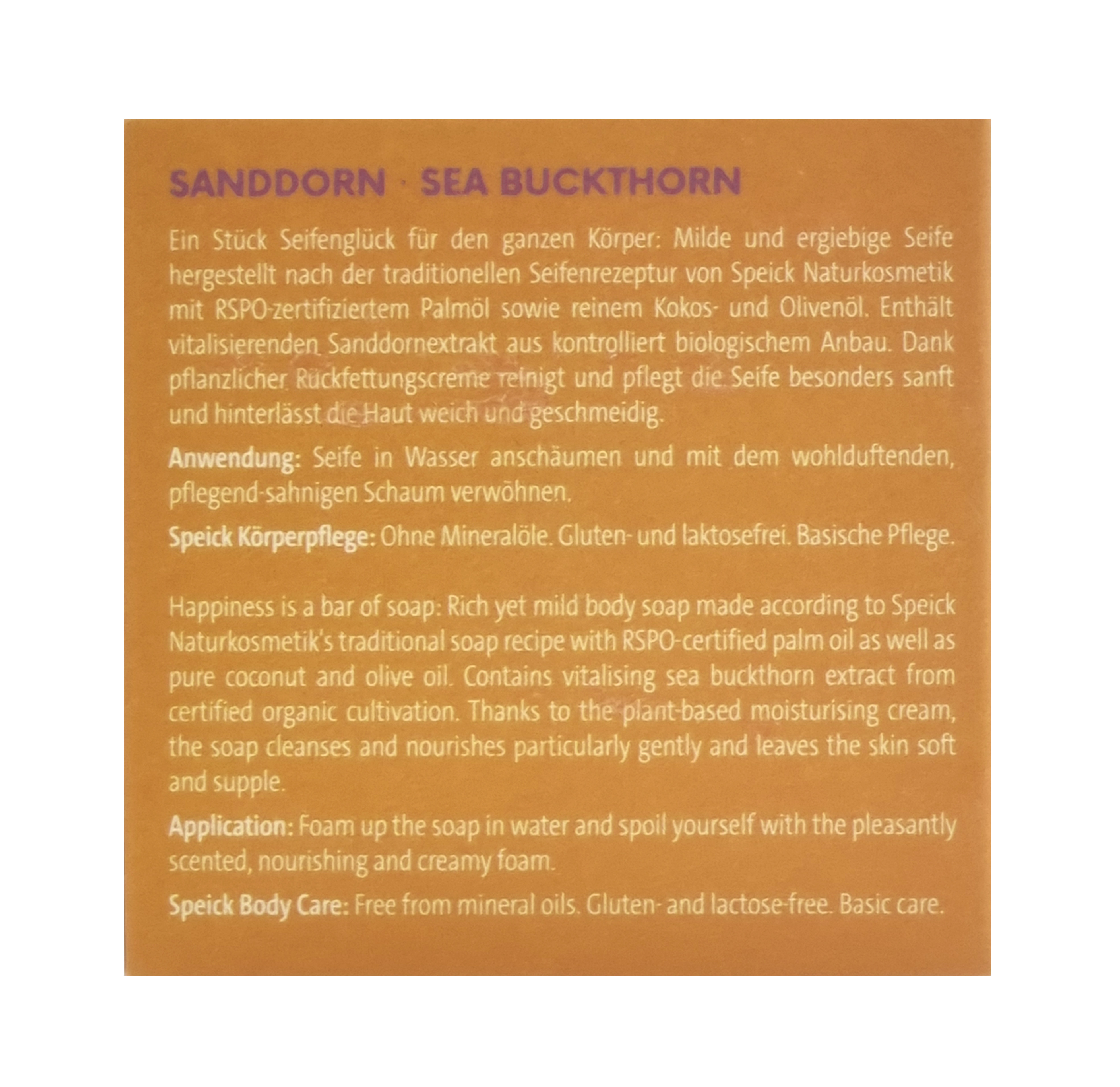 Produktinformationen "Soap Bar Sanddorn 100g Speick"