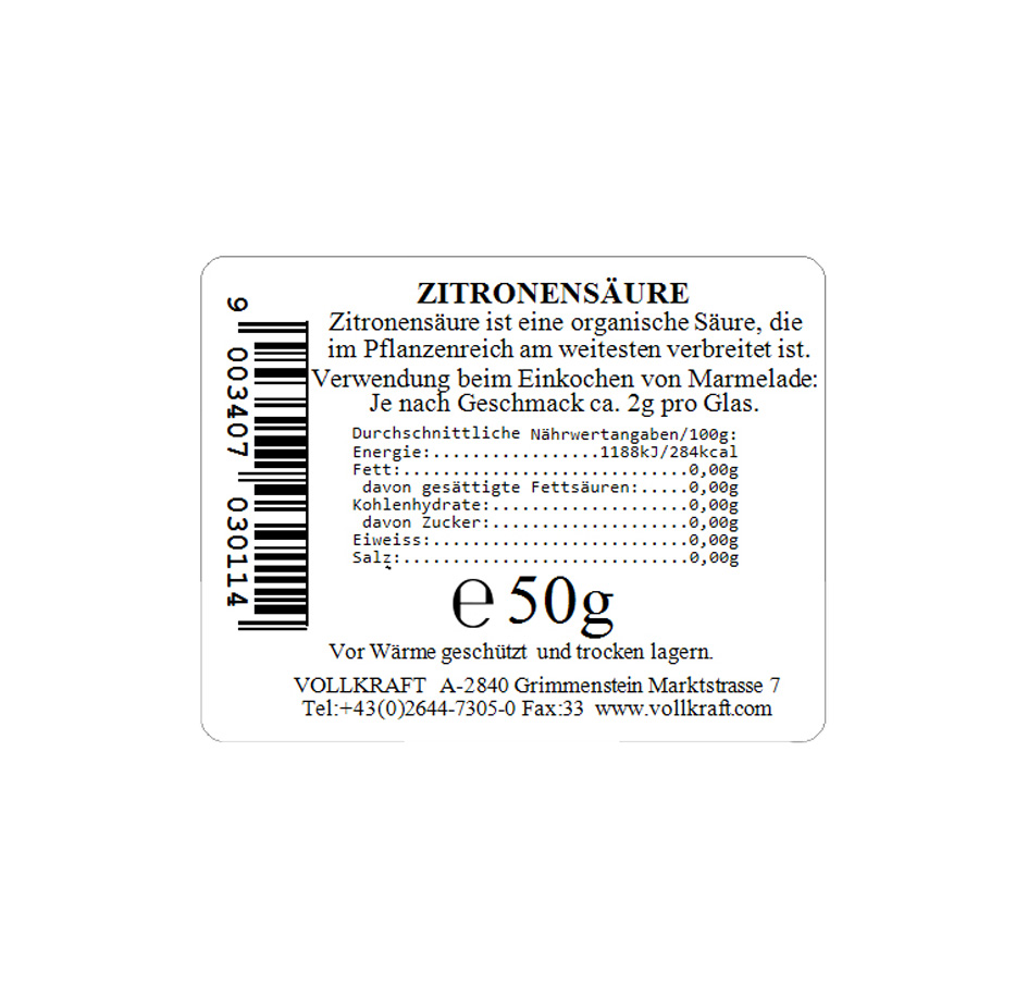 Produktinformationen "Zitronensäure 50g Vollkraft"